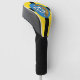 Golf Head Cover with a design with the flag of Wellington City, New Zealand. A yellow flag with a black cross and the seal of the city with an image of a ship in the centre