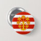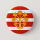 Round Button with design with a flag of historic county of Westmorland, in England, Great Britain; white and red striped flag with golden heraldic apple tree in the centre