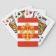 Poker playing cards with design with a flag of historic county of Westmorland, in England, Great Britain; white and red striped flag with golden heraldic apple tree in the centre