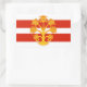 Sticker with design with a flag of historic county of Westmorland, in England, Great Britain; white and red striped flag with golden heraldic apple tree in the centre