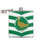 Vinyl wrapped flask with design with a flag of historic county of Wiltshire, in England, Great Britain; white and green flag with angled stripes and great bustard in the centre