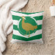 Throw pillow with design with a flag of historic county of Wiltshire, in England, Great Britain; white and green flag with angled stripes and great bustard in the centre