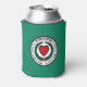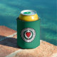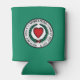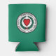 Can cooler with flag of city of Worcester, Massachusetts; green flag with white emblem with red heart in the centre