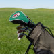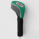 Golf driver cover with flag of city of Worcester, Massachusetts; green flag with white emblem with red heart in the centre