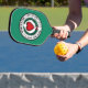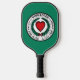 Pickleball Paddle with flag of city of Worcester, Massachusetts; green flag with white emblem with red heart in the centre