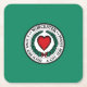 Paper coasterwith flag of city of Worcester, Massachusetts; green flag with white emblem with red heart in the centre
