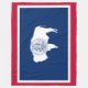 This design features the state flag of Wyoming, which is a doubly landlocked state in the western United States. It is the second most sparsely populated state in the country. Wyoming is bordered to the north by Montana, to the east by South Dakota and Nebraska, to the south by Colorado, to the southwest by Utah and to the west by Idaho and Montana. The official nickname of Wyoming is "Equality State", but it is also sometimes known as "Cowboy State" or "Big Wyoming". Wyoming's western half is mostly covered by the ranges of the Rocky Mountains, while the eastern half of the state is high-elevation prairie called the High Plains. Yellowstone national park is partially in Wyoming and Grand Teton national park is entirely within the state. Cheyenne is the state capital and the most populous city of Wyoming. The flag of the state of Wyoming includes a silhouette of an American bison. The red symbolises Native Americans and the blood of pioneers who gave their lives. The white is a symbol of purity and uprightness. The blue is the colour of the skies and distant mountains.