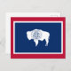 This design features the state flag of Wyoming, which is a doubly landlocked state in the western United States. It is the second most sparsely populated state in the country. Wyoming is bordered to the north by Montana, to the east by South Dakota and Nebraska, to the south by Colorado, to the southwest by Utah and to the west by Idaho and Montana. The official nickname of Wyoming is "Equality State", but it is also sometimes known as "Cowboy State" or "Big Wyoming". Wyoming's western half is mostly covered by the ranges of the Rocky Mountains, while the eastern half of the state is high-elevation prairie called the High Plains. Yellowstone national park is partially in Wyoming and Grand Teton national park is entirely within the state. Cheyenne is the state capital and the most populous city of Wyoming. The flag of the state of Wyoming includes a silhouette of an American bison. The red symbolizes Native Americans and the blood of pioneers who gave their lives. The white is a symbol of purity and uprightness. The blue is the color of the skies and distant mountains.