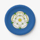 Paper Plate with design with a flag of historic county of Yorkshire, in England, Great Britain; flag with a white rose on a blue field