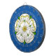 Dartboard with design with a flag of historic county of Yorkshire, in England, Great Britain; flag with a white rose on a blue field
