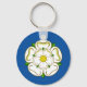 Keychain with design with a flag of historic county of Yorkshire, in England, Great Britain; flag with a white rose on a blue field