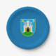 Paper plate with design with flag of Zagreb, capital city of Croatia, blue flag with emblem