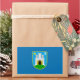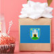 Sticker with design with flag of Zagreb, capital city of Croatia, blue flag with emblem