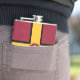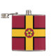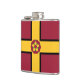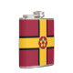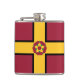 Vinyl wrapped flask with design with a flag of historic county of Northamptonshire, in England, Great Britain; maroon flag with a gold cross and the county’s traditional rose in the centre