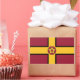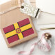 Sticker with design with a flag of historic county of Northamptonshire, in England, Great Britain; maroon flag with a gold cross and the county’s traditional rose in the centre