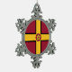 Snowflake Ornament with design with a flag of historic county of Northamptonshire, in England, Great Britain; maroon flag with a gold cross and the county’s traditional rose in the centre