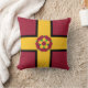 Throw pillow with design with a flag of historic county of Northamptonshire, in England, Great Britain; maroon flag with a gold cross and the county’s traditional rose in the centre