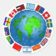 Illustration of the earth with world flags going around the outside edge representing diversity, travel etc. Image available on various gifts and products.