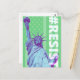 Statue Of Liberty RESIST Art Postcards in duotone purple, white and green