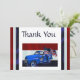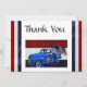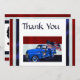 This patriotic Veteran Thank You Card displays a vintage truck with an eagle shaped flag on the door and flying the US flag proudly on the front. The back has the eagle shaped flag, and a quote. The ribbon borders, the eagle on the back and the wording can all be changed or deleted as you prefer.