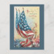 Three American flags and stylised forget-me-not flowers for the fallen. A vintage Memorial Day postcard from 1908.