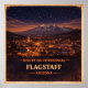 Capture the high-altitude charm and mountain beauty of Northern Arizona with this Flagstaff Centennial poster. Commemorating the 100th anniversary of Route 66, this vintage-inspired artwork features the glowing lights of downtown Flagstaff nestled beneath the majestic, snow-capped San Francisco Peaks. Set under a breathtaking, star-filled night sky with a warm golden horizon, the design celebrates one of the most scenic and beloved stops along the Mother Road.