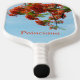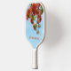 This Pickleball paddle captures the beauty of the Flamboyant, Royal Poinciana or Flame tree with its tropical orange and red flowers hanging down against a blue sky in a photographic image. Personalize with a Name.
