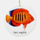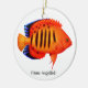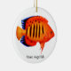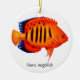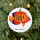 Original fine art design of a colourful Flame Angelfish by artist Carolyn McFann of Two Purring Cats Studio printed on a customisable holiday ornament for Christmas or anytime. Great gift idea for saltwater coral reef aquarium fans.