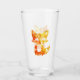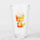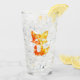a decorative design of a little cute fox featuring orange and yellow colours on its silhouette looking like flames on a drinking glass.
