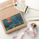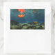 A bright orange leaf sinking beneath a rippling brook, with rays of sunlight falling through the waters to the rocks on the stream bed.