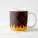 Flame kissed, orange and yellow flames at bottom, brown background with black grill marks.