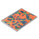 An eye-catching spiral Notebook, suitable for use as a journal, with an abstract pattern in vibrant colours - Flaming Orange, Midnight Blue and Deep Green, from a digital design by Judy Adamson