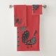 Flame Red and Scandinavian Pattern Bath Towel Set