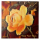A stylised depiction of a yellow-orange rose on a dark red and orange background. Add your own text.