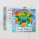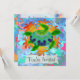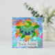 Custom two-sided invitation cards. Front has customisable "You're Invited". Back has invitation information--enter your event title, date, time, location, and a personal message. A digitally painted green sea turtle with a patterned shell against a background of orange kelp like flames.
