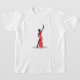 Flamenco Dancer distressed design in red and black. She's holding a fan and standing on a platform.