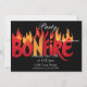 A digital illustration of a Bonfire Flames Graduation Party Invitation A graphic design with the word bonfire with flames integrated into the letters.