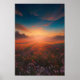 The sun was setting over the field of flowers, painting the sky with a warm orange hue. The vibrant blooms of the flowers were illuminated by the soft light, creating a stunning display of colours. As the gentle breeze blew through the field, the petals of the flowers danced and swayed in the wind. It was a peaceful and serene moment, a perfect end to a beautiful day.