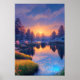 As you gaze out over the serene lake, the stillness of the water seems to reflect the quietness of the surrounding forest. The sun is setting behind the trees, casting a warm orange glow across the sky. You can hear the gentle rustling of leaves in the soft breeze and the distant chirping of birds.