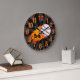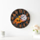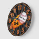 Coolest Flaming Baseball Clock with YOUR NAME and favourite Jersey NUMBER on Baseball Flames and Your Name on the Baseball. Black texturised background with Flaming Clock Numbers and Second/Minute dashes.