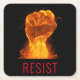 Social justice themed coaster features large fist of fire and flames with customisable "RESIST" text in red modern font on black background.