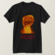 Social justice themed tee features large fist of fire and flames with customisable "RESIST" text in red modern font on black background.
