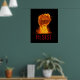 Social justice themed wall art features large fist of fire and flames with customizable "RESIST" text in red modern font on black background.