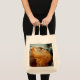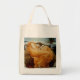 The printing came out very well, better than I had anticipated. The natural color fabric is sturdy with strong seams and comfortable handles. This tote fits easily over my shoulder. As it is filled, the bottom flattens out--very cool! I would buy this product again. This grocery tote holds a lot of groceries! The image quality was very good. The colors were a little darker than I had expected. The darkness may have been due to printing on a natural color fabric rather than on white. The cat design is attractively centered on the tote. The spirit of the design is very lively, just as it appears on the Zazzle website.