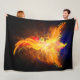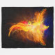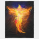 A blanket featuring a flaming phoenix done in airbrushed Style.