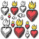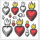A bold vintage flaming red sacred heart graphic on a selection of durable contour stickers. Each 14" x 14" sheet contains vintage heart stickers in black and white and red, yellow and blue. Available in your choice of white or transparent background colour in a variety of sizes. Add your own text to make these stickers truly one of a kind. Customise your laptop, water bottle, skateboard deck or just about anything at all with these durable vintage sacred heart decals.
