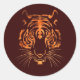 Flaming tiger classic round sticker