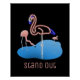 A glowing pink neon flamingo standing in a pond with a few real (cartoon) flamingos. Text says, "Stand Out," and is customisable.