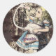 Musical Notes from Antique Sheet Music Alice in Wonderland Holding a Flamingo Blush Pink and Powder Blue Classic Round Sticker. Great for dressing up a brown kraft paper wrapped present.