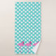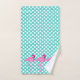 This cute bath towel set brings a bit of the tropics to your bathroom with teal and white polka dots and pink flamingos.
